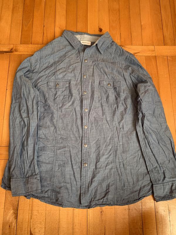 Синенька фірмова натуральна сорочка,приємна до тіла,заміри на фото,52 р.Стан дуже хороший