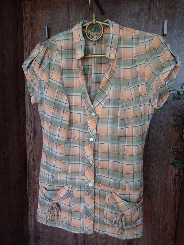 Рубашка-туніка у завжди актуальну клітинку. Нова, без бумажної бірки. ПОГ - 46 см ПОТ - 42 см НИЗ - 48 см Довжина - 70 см