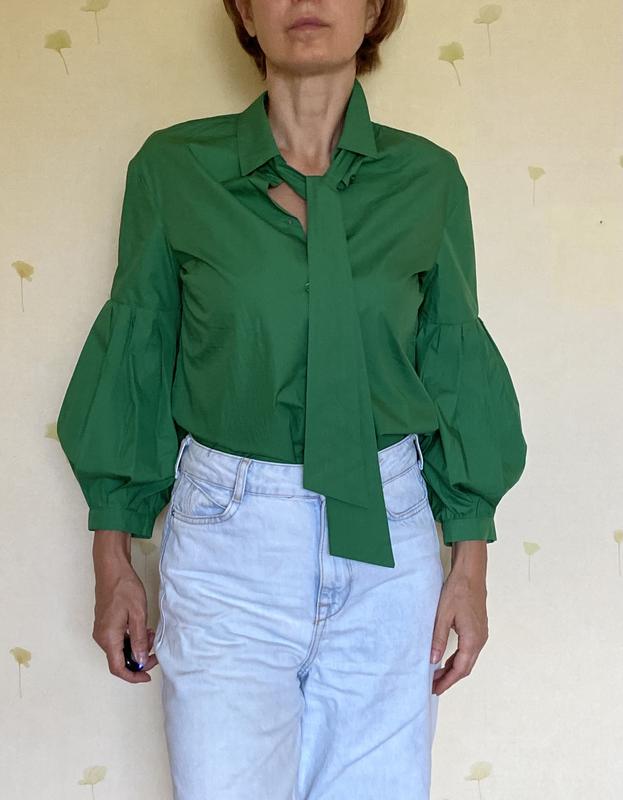 Стильна сорочка смарагдового кольору. Обхват у грудях 102 см.