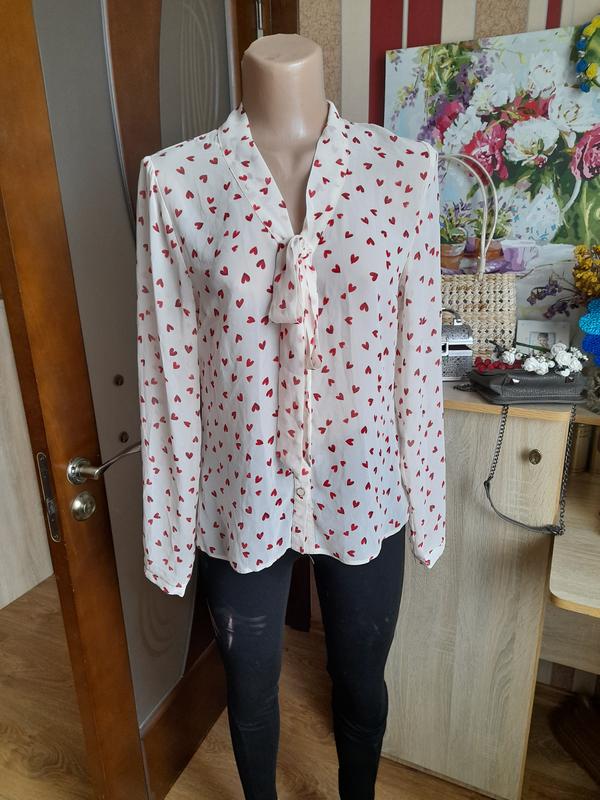 ніжна шифонова сорочка у сердечка, спереду зав'язується, по бірці М, але орієнтуйтеся по замірах довжина 59 см, ОГ 45 см