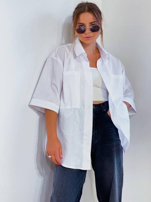 Білі сорочки ніколи не вийдуть із моди Обирай свій стиль - класичний або оверсайз Базові сорочки добре поєднуються як і з діловим стилем так і з повсякденним тканина-котон Розмір оверсайз 750 грн