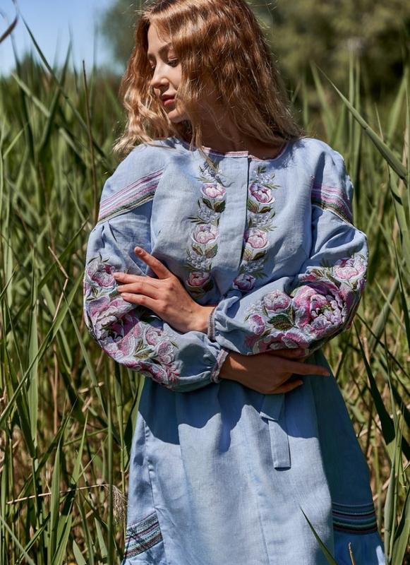 Пересилка цієї моделі здійснюється новою поштою тільки після 100% оплати на картку приватбанку, монобанку впродовж 1-5 робочих днів. Надзвичайне, довжиною міді, плаття-вишиванка в насиченому блакитному кольорі В нашому магазині ви можете також придбати цю модель і багатьох інших кольорах (червоне,бордове,блакитне,синє,жовте,темно зелене).Додаткові фото надам. Квітковий орнамент, нанесений за допомогою машинної вишивки безпосередньо на тканину, нагадує петриківський розпис. Вишивкою більшою мірою прикрашені пишні рукави, зібрані широкими манжетами. Яскравий візерунок торкнувся і поділу спідниці на бічних вставках, а також плечей і зони декольте. У комплекті з сукнею йде довгий поясок без китиць. Зверніть увагу, колір тканини і вишивки може дещо відрізнятися від зображення на екрані через спотворення передачі кольору монітором. Розмір: 42,44,50 тканина: 100% льон