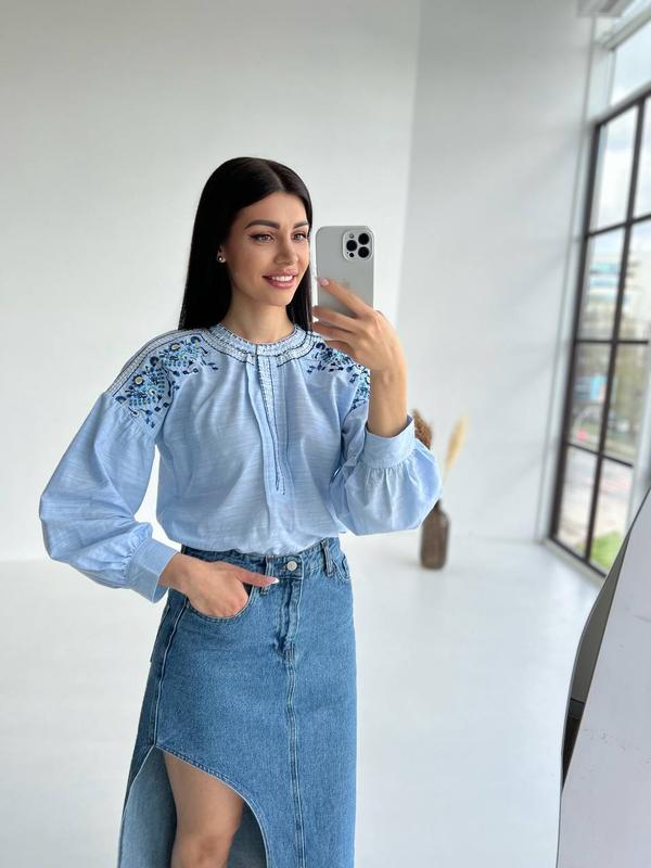 Вышитая рубашка Размеры: S, M, L Тканина: бавовна Цвет: голубой ЗАМІРИ ВИРОБУ: S: ОГ 98 см, низ 100 см Длина спереди 59 см, сзади 64 см Длина рукава от горловины 70 см М: ОГ 102 см, низ 104 см Длина спереди 60 см, сзади 65 см Длина рукава от горловины 71 см L: ОГ 106 см, низ 108 см Длина спереди 61 см, сзади 66 см Длина рукава от горловины 72 см