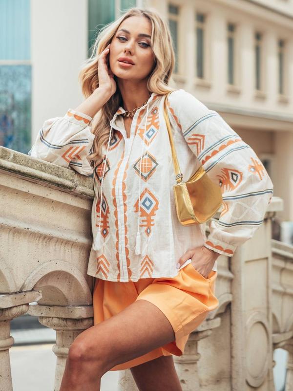 Стильная вышиванка/рубашка с узором белая женская на лето- женскую одежду