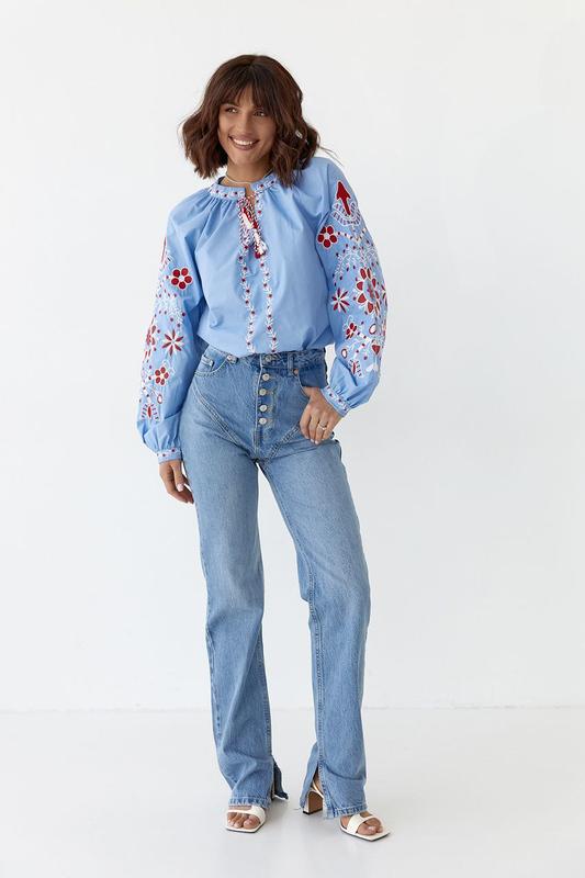 ❤️шикарная женская вышиванная рубашка голубая голубая голубая голубая голубая голубая голу...