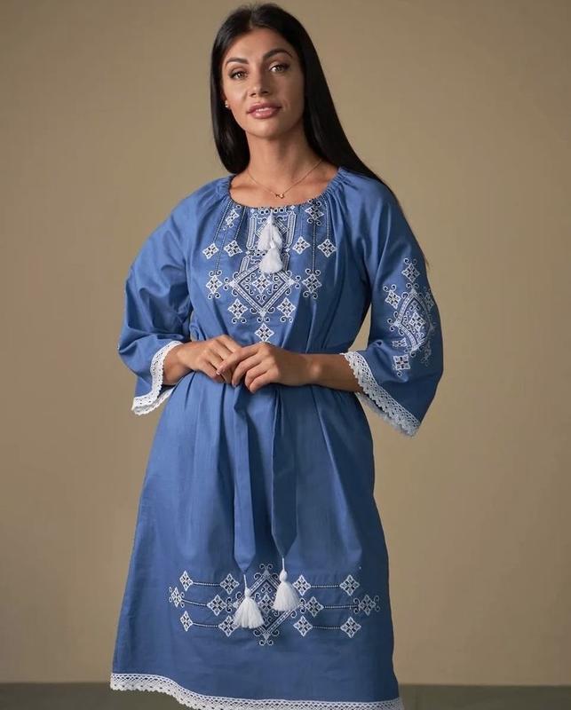 Платье вышиванка синяя женская