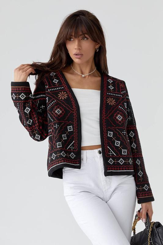 Стильный жакет с вышивкой, жакет вышиванка, жакет из эко кашемира, этатно жакет