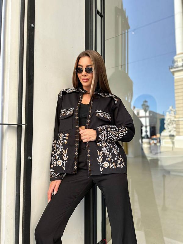 Колоритный вышитый пиджак, рубашка этно с вышивкой, женская вышиванка