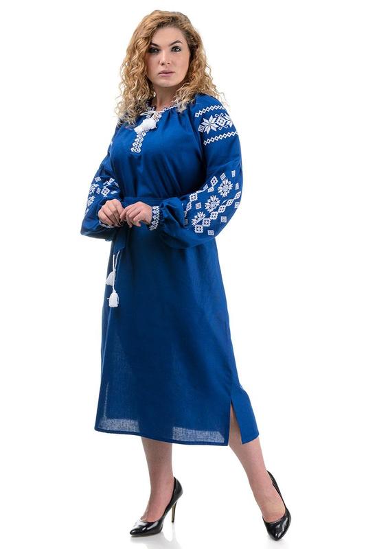 Стильное вышитое платье "Купава". Платье-вышиванка изготовлено из качественных материалов. Ткань - лен плотная и приятная на ощупь. Орнамент на рукавах и груди вышит машинным способом. Важно, что даже после многократных стирок ткань и вышивка сохранять свои первоначальные цвета. Пышные рукава, украшенные оригинальной вышивкой, придает платью особой изысканности. Платье прекрасно дополняет поясок с белыми кисточками. За счет пояса можно подчеркнуть талию, а разрезы сбоку помогут придать Вашему образу невероятной элегантности. - Размеры: S,L,XL,2XL - Тип ткани: Лен ( состав 80% лен, 20% полиэстер для мягкости ткани и легкой глажки) - Отделка: Машинная вышивка - Цвет: электрик Весь ассортимент взрослых и детских вышиванок - https://family- *********************************************** Весь ассортимент нашего сайта - ************************ Пересылка: Укр. почта, Новая почта
