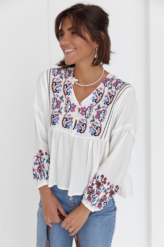 Жіноча вишиванка з вишивкою гладдю та мереживом