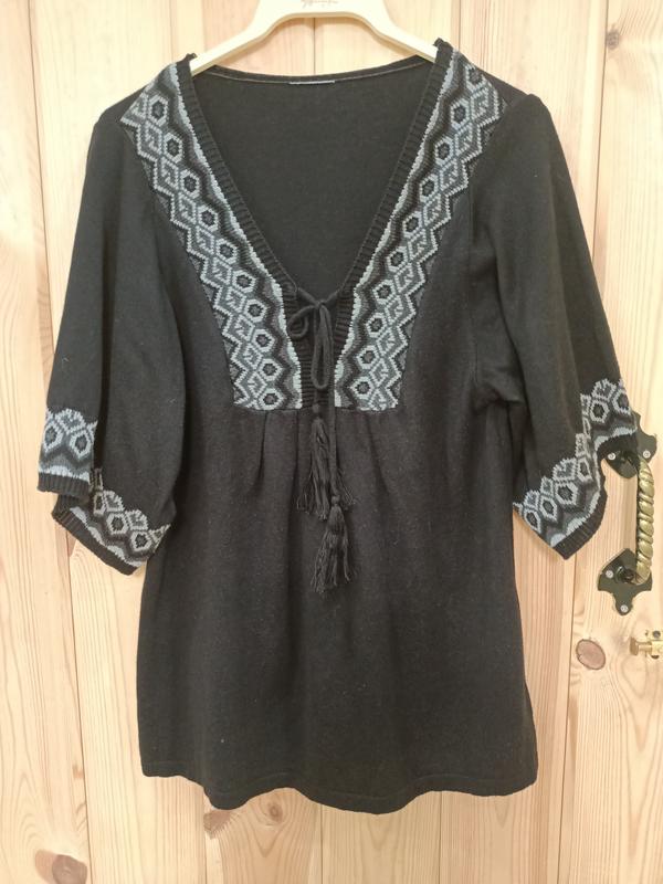 кофта-блуза с орнаментом.трикотажукав до локтя.на завязках горловина.черный цвет (камера освещает),орнамент серый.