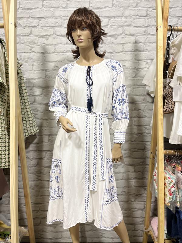 Очень красивое, ЯСКРАвое платье с вышивкой, объемный рукавчик, длина миди, сверху стягивается, есть подкладка, качественный материал, спереди разрез, в талии фиксируется пояском, садится свободно Цена 💸 1500 грн в нашем инста магазине Размер универсальный 👌 • Длина 119 см • полуобхват груди 55 см • длина рукава от горловины 67 см • полуобхват талии 55 см + фиксируется пояском • полуобхват бедер 60 см 🤍В белом цвете 💙В синем цвете 💚в зеленом цвете