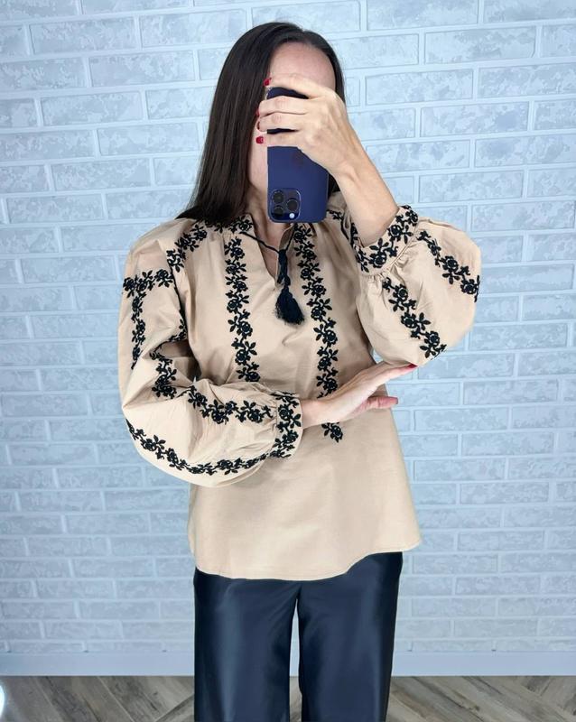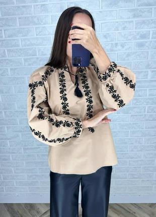 Рубашка вищиванка Модель 5438 Размеры:с м л Замеры: S ПОГ-54 Длина -65 Длина рукава от горловины-69 М ОГ-56 Длина -68 Длина рукава от горловины-70 L ОГ-57 Длина-68 Длина рукава от горловины-71 Стильная современная вышиванка Состав ткани: 80% хлопок, 20% полиэстер. Вышивка машинная гладь Страна производитель: Турция 🇹🇷 Идеальная современная вышиванка, must have в гардеробе Украинки. Цвета: черный и беж с вышивкой в стиле минимализм ———————————