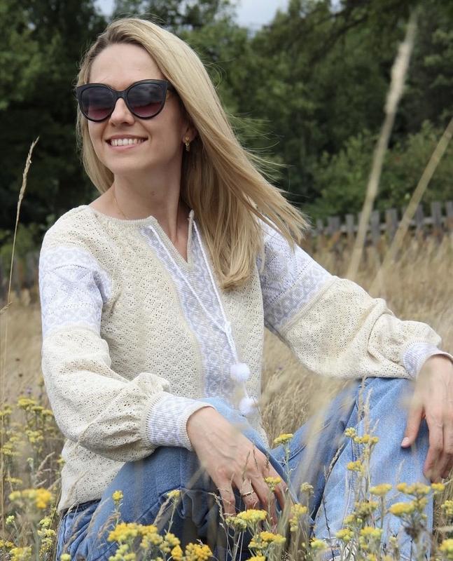 Стильная, современная вязаная женская вышиванка, подойдет как для праздничных, так и и повседневных дней. Натуральная к телу: 100% лён Размерный ряд: XS-XXL
