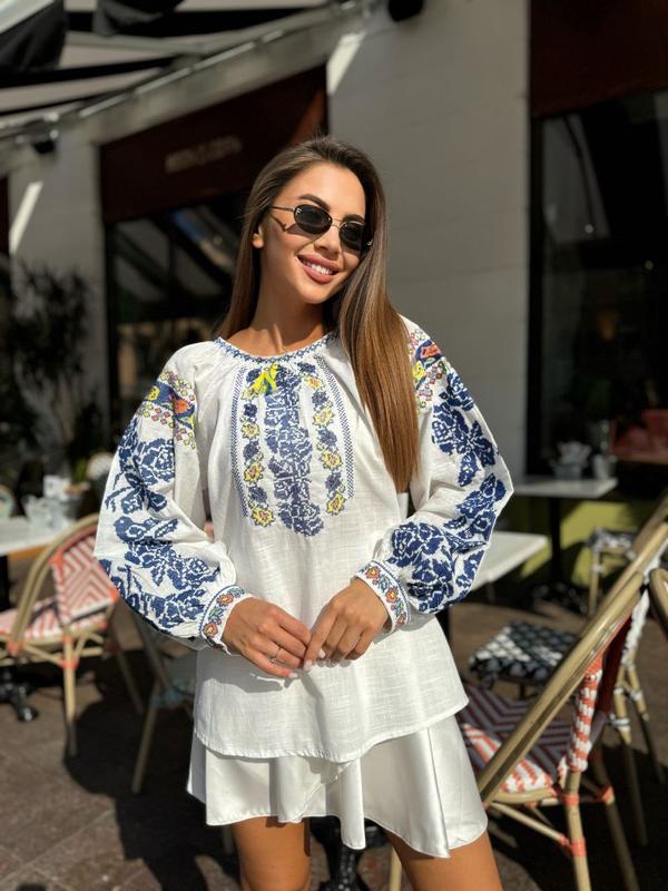 Рубашка с вышивкой "крестиком" Арт Размер S на ог до 90-91. Размер M на ог до 96-99, Размер L на ог до 103-105