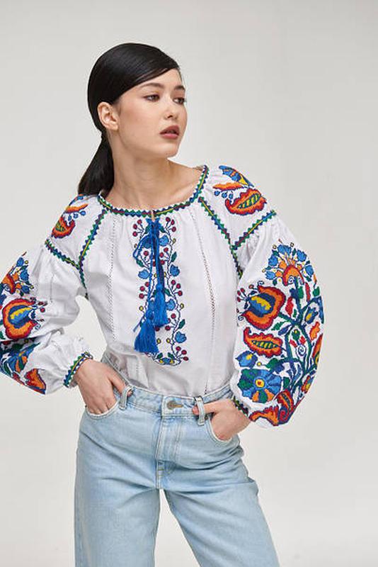 Вышиванка женская Размеры евро от 34 до 46. от xs до 3xl Тканина: бязь (100% бавовна). Вишивка машинна, хрестиком. На фото модель в размере 36. Параметры модели: Ог 88 см, От 62 см, Об 88 см. Рост модели: 168 см.