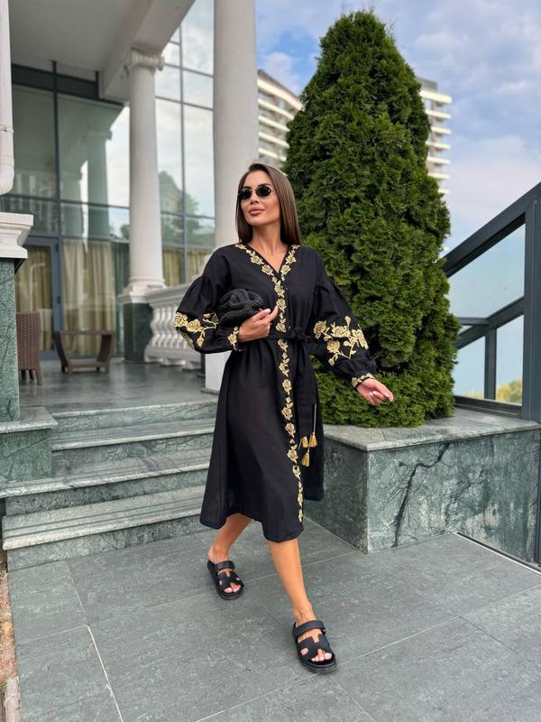 Изысканное платье-вышиванка черная с золотым