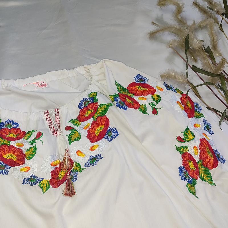 Вышитая блузка женская ◽Цена 860 грн ◽ Ткань: рубашечная (поплин) ◽Цвет: белый ◽Размер: L-XL (48-50) ◽Замеры: ПОГ 57 Длина 71 Длина рукава 64