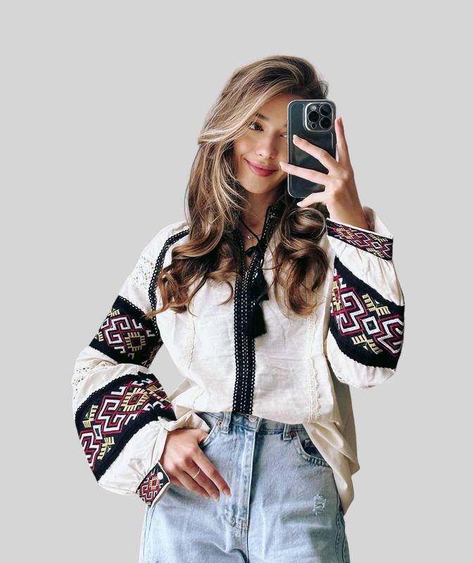 Отримали !!! Новинка !!! Арт Блуза #вишиванка 80% хлопок, 20% полиэстер Размер : С.М.Л Турция Замеры: Полуобхват груди по изделию: S-51 см, M-53 см, L-55 см Длина изделия: S-64 см, М-65 см, L-66 см Длина рукава от горловины: S-70 см, М- 71 см, L-72 см