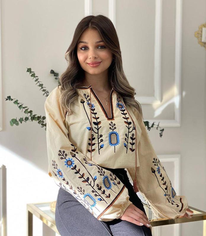 Бежевая женская вышиванка ❤️ женская вышитая блуза ❤️