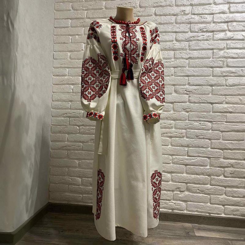 В такому вбранні важко залишитись непоміченою. Не соромтесь, ловіть захопливі погляди на собі і будьте у центрі уваги оточуючих. Підкресліть свою красу, харизму та відчуття доброго смаку, обравши наш вишитий одяг. Жіноче вишите плаття "Бріана" При замовленні враховуються будь-які побажання Клієнта (фасон, колір, матеріал, візерунок тощо), а також можливий варіант пошиття сукні на дітей різного віку. Жіноче вишите плаття "Бріана" - Техніка вишивання: машинна; - Тканина: на фото - льон, (Тканини на вибір - велюр, льон, домоткане полотно, габардин, батист, атлас, онікс, шифон, мадонна); - Колір: білий; - Фасон сукні: пряме з клинами і з поясом; - Довжина сукні: максі (140 см); - Рукав: довгий (бохо); - Розмір: 40-66 або Ваші особисті мірки (зріст, обхват грудей, обхват талії, обхват стегон). Вишиті сукні - символ вишуканості. Оновіть свій образ за допомогою наших унікальних моделей. Відчуйте на собі витонченість та красу української вишивки, яка завжди буде в тренді. Бажаєте комплект вишиванок у одному стилі для всієї сім'ї?! Не проблема!.. Ми пошиємо плаття, блузки, сорочки з однаковим візерунком як на дорослих, так і для дітей. Ми займається пошиттям вишитого одягу вже більше 8-ми років. У нас одні з найкращих цін на ринку України. Про якість наших товарів свідчать відгуки наших задоволених клієнтів! В нашому асортименті є вишиті жіночі сукні, блузки, чоловічі вишиті сорочки та дитячі вишиванки. Наша особливість це те, що ми - виробники і можемо будь-яку модель пошити індивідуально під ваші розміри. Не менш важливою особливістю, є можливість пошиття цілого комплекту з ідентичним візерунком, наприклад, для чоловіка, дружини та доньки з сином! Замовивши у нас - Ви залишитеся задоволеними, адже ми - гарантуємо якість нашого товару. Купувати товар у нас можна і гуртом і в роздріб. Також ми працюємо по перерахунку з організаціями. Пошиття будь-якої моделі можливо, як за індивідуальними мірками, так і за стандартними розмірами. Для пошиття використовується тільки найякісніша тканина! Для гуртових клієнтів - виготовляємо безкоштовний зразок і відправляємо за наш рахунок. Після чого замовник може внести коригування і відправити зразок назад. Ми можемо виготовити будь-яку модель індивідуально з візерунком, який Ви забажаєте! Ще однією з переваг - одні з найнижчих цін на ринку. У нашому асортименті є, як і більш дорогі варіанти, так і бюджетні - для будь-якого гаманця! Якщо у Вас виникають запитання - телефонуйте до нашого консультанта. Ми з радістю відповімо на усі Ваші запитання і допоможемо підібрати розмір чі модель товару! Замовити товар Ви можете залишивши його через кошик вказавши свої дані та розмір товару (або Ваші заміри). Також, це можна зробити по телефону з менеджером! Після уточнення усіх деталей - замовлення передається на виготовлення. Коли вишиванка готова - ви можете обрати спосіб оплати та доставки. На гуртові замовлення більше 5 шт. одного виробу (візерунку) потрібно вносити 30% передплату перед виготовленням товару.