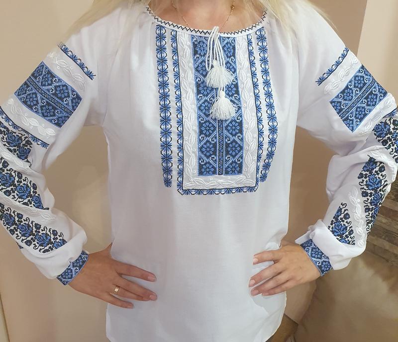 Женская вышитая рубашка крестиком. Тканина домоткане полотно, машинна вишивка.