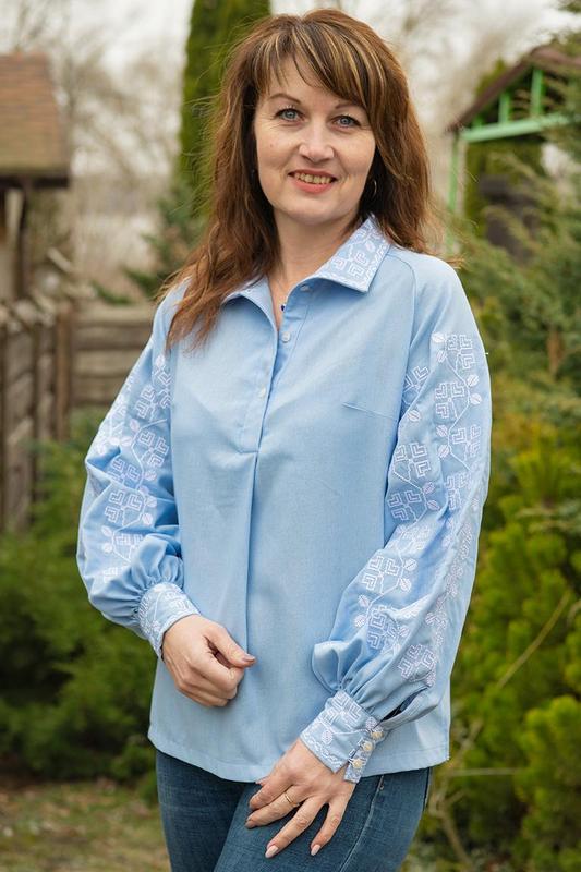 Женская вышиванка голубая, вышиванка с минималистичным орнаментом, этатно сорочка с вышивк...