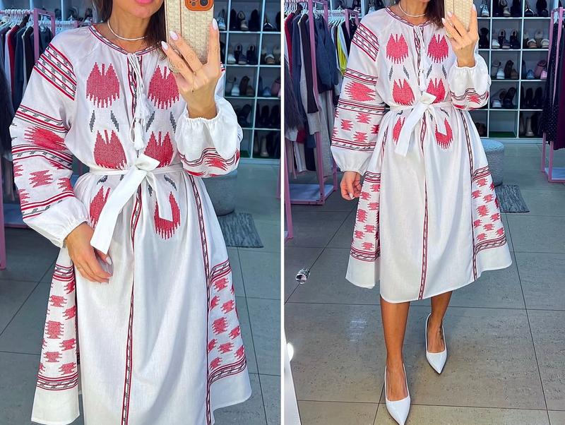Лен, есть в черном, белом и беж( молочный) цветах. Плотный, качественный материал, не просвечивается. Вещи все в наличии в физическом магазине, отправка в день заказа. У нас есть большой ассортимент вышиванок по приятной цене.