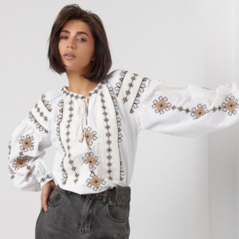 Вышиванка на завязках с цветным орнаментом Артикул: 7019 Вышиванка с цветным орнаментом - это стильное сочетание традиционности и современного комфорта. Свободный прямой крой обеспечивает легкость и удобство в носке, а рукава-фонарики, которые застегиваются на пуговицы, добавляют образу нежности и утонченности. Круглая горловина гармонично дополнена разрезом спереди, что придает вышиванке особый шарм. Декоративные завязки в виде кисточек добавляют этнический характер и позволяют регулировать глубину выреза. Рукава, горловина, а также перед изделие украшены цветной вышивкой, которая создает изысканный акцент. Состав ткани70% хлопок, 30% полиэстер Размер: S;M;L;XL Цена: 1410 грн