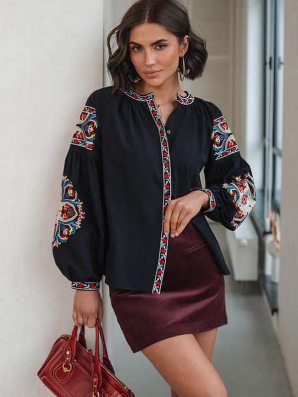 ‼️ОТПРАВЛЕНИЕ ВПРОДОВЖ 2-5 РАБОЧЫХ ДНЕВ!!️ Блузка из высококачественного турецкого материала. Изделие с круглым вырезом горловины и длинными рукавами реглан с манжетами на пуговицах. Застегивается на пуговицы. Декорирована вышивкой. Размер: 44-46, 46-48, 48-50. Материал: 80% хлопок, 20% полиэстер. 901902