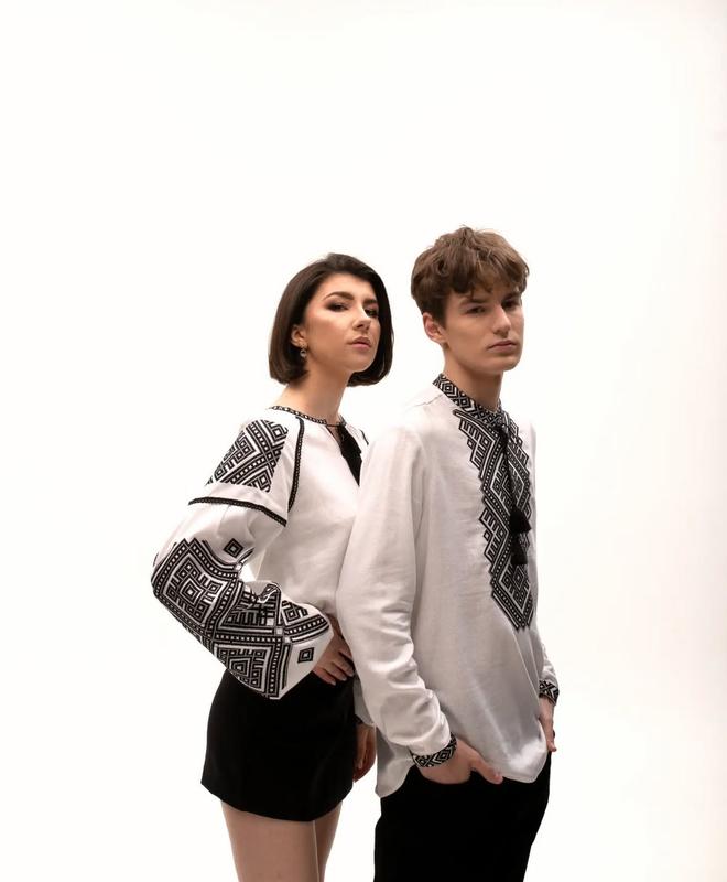 Парний образ «Чорна геометрія» Тканина льон стрейч Розмір: жіноча L, чоловіча XL (маломірять!!) Були одягнені два рази, знаходяться в ідеальному стані!