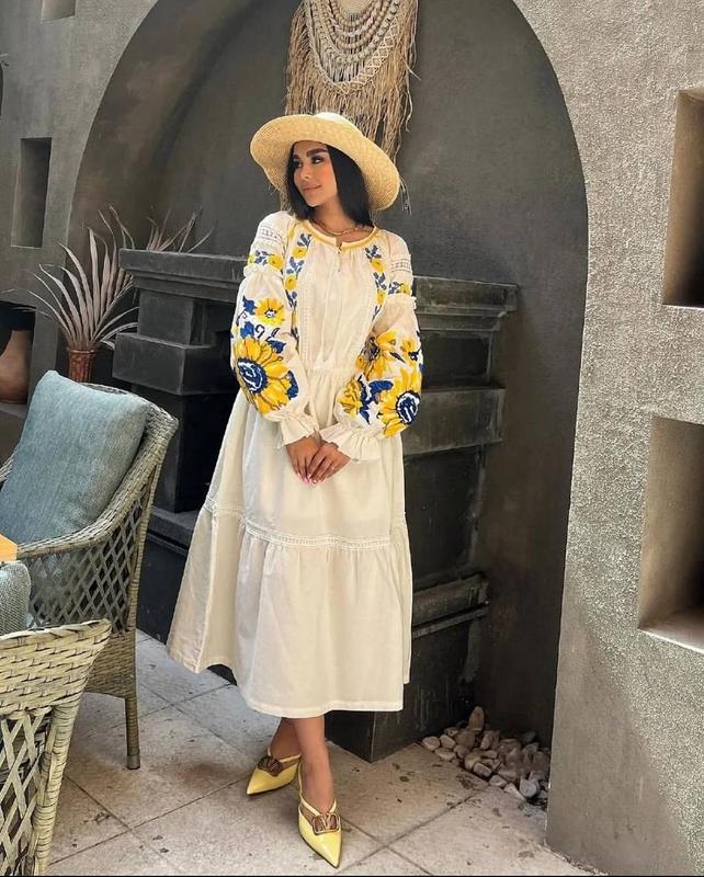 Вышитое платье Размеры: S (44-46); М (46-48); L (48-50) Тканина: бавовна Цвет: белый Замеры: S: ОГ 106 см, ОТ (резинка добре тягнеться) 76 см, ОБ 138 см Длина платья: 120 см Длина рукава от горловины 69 см М: ОГ 112 см, ОТ (резинка добре тягнеться) 82 см, ОБ 144 см Длина платья: 121 см Длина рукава от горловины 70 см L: ОГ 114 см, ОТ (резинка добре тягнеться) 84 см , ОБ 146 см Длина платья: 122 см Длина рукава от горловины 71 см Цена: 1550 грн