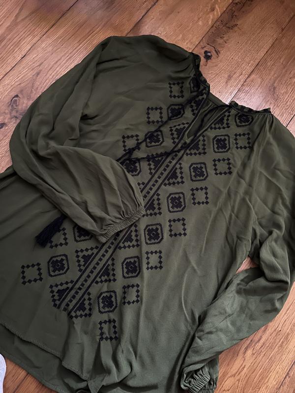 Довжина - 65 см Плечового шва немає, матеріал бавовна