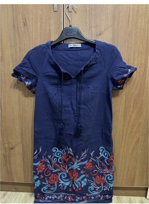 Льняна сукня прямого покрою , довжина до коліна , машинна вишивка