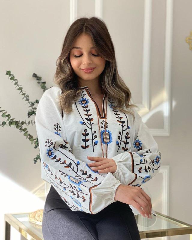Женская рубашка вышиванка с вышитыми васильками, блуза вышита в украинском стиле
