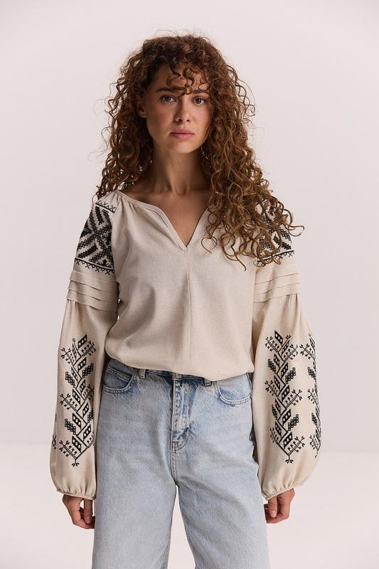 Св-бежевая вышиванка с черной вышивкой