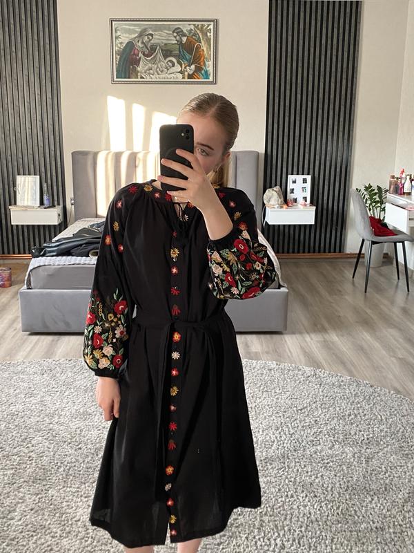 Нереальна чорна вишита сукня Одягала один раз Довжина 108 Ширина 53 є пас Рукава 59 Груди 44