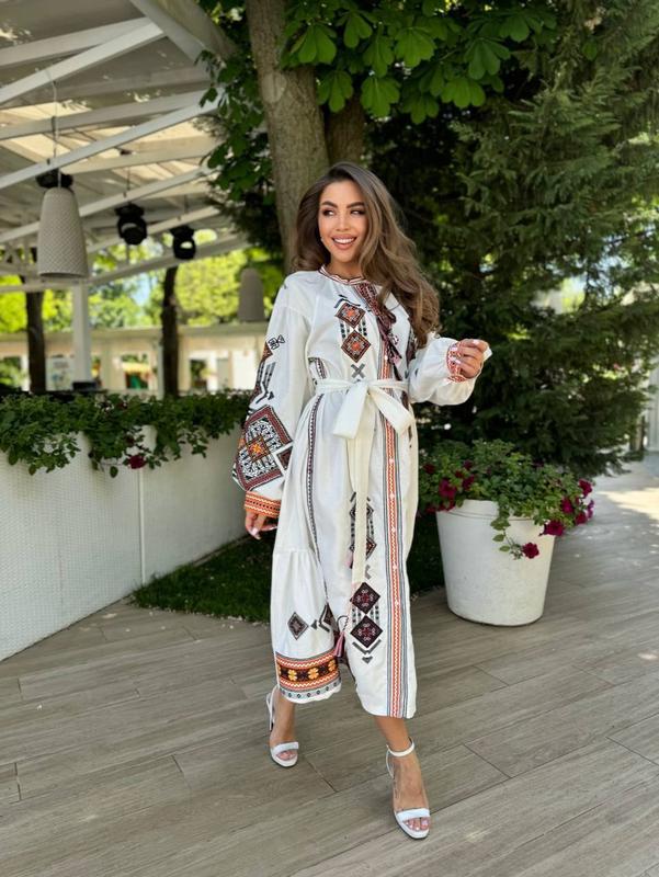 Арт 5690 #Сукня-вышиванка под пояс в украинском стиле!! Размер: С.М.Л Производитель: Турция Состав: 80% хлопок+20% полиэстр Цена 1940 грн Замеры: Полуобхват груди по изделию: S-57 см, M-59 см, L-62 см Объем бидер: S- 63 см, M- 65 см, L-67 см Длина изделия: S-120 см, М-121 см, L-122 см Длина рукава от горловины S-71 см, М- 71 см, L-72 см