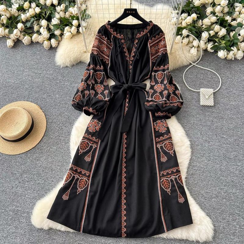 Лляна сукня з вишивкою,не світить ,в наявності в 2х кольорах чорна та світлий беж.Можна носити як вільного крою так і під поясок