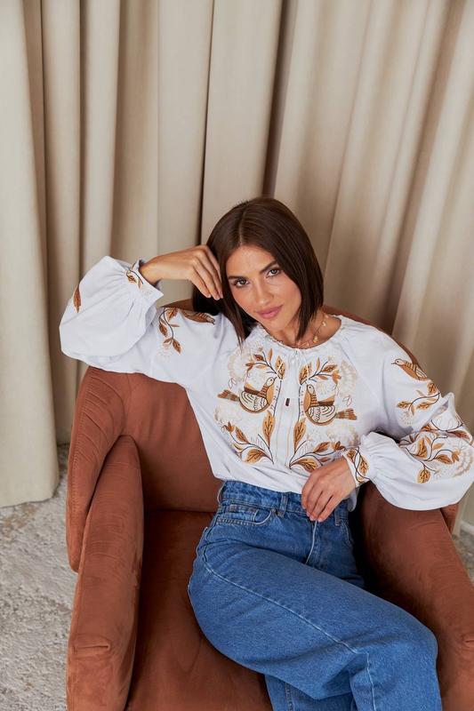 Вышитая рубашка женская вышиванка белая вышитая рубашка с длинным рукавом