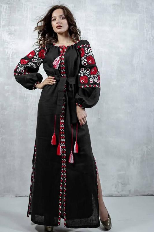 Вышитое платье на натуральном льне😍🔥 ✔️Размер:40 42 44 46 48 50 52 54 56 ✔️Вышивка: машинная ✔️Тканина: 100% льон ✔️Ждать: 10днов❗️ Длинное вышитое платье "Волшебность 3" пошитое из высококачественной и натуральной ткани - лен(100%). Прямого силуэта, с отделанными вышивкой разрезами по бокам и спереди, придающей элегантности и стройности. А нежная нежная вышивка на расширенных рукавах придает платья романтичности. Платье гармонично дополняют кисточки в тон вышивки. В комплекте идет пояс с кисточками, который красиво подчеркивает силуэт.