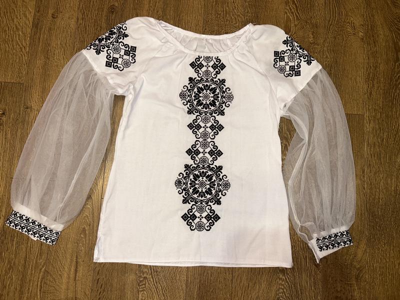 Вишита сорочка (вишиванка). Машинна вишивка. Рукава з прозорого фатину. - Довжина — 60 см - Напівобхват грудей — 43 см - Ширина низу — 46 см - Довжина рукава — 67см