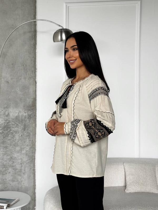 Вышиванка женская бежевая коричневая черная вышитая рубашка