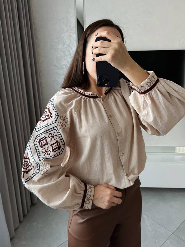 Вышиванка Модель 5472 Размеры S m l Замеры: S ПОГ -53 см Длина -64 см Длина рукава от горловины-68 см М ПОГ -55 см Длина -64 см Длина рукава от горловины-68 см L ПОГ -57 см Длина-64 см Длина рукава от горловины-68 см Погрешность измерения +~1см Стильная современная вышиванка Состав ткани: 80% хлопок, 20% полиэстер. Вышивка машинная гладь Страна производитель: Турция 🇹🇷 Идеальная современная вышиванка, must have в гардеробе Украинки. Цвета: бежевый и белый