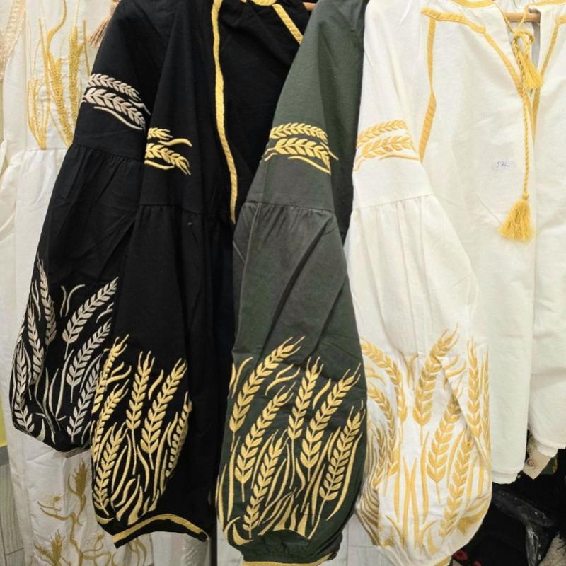 Сорочка вишита в колосок есть в четырех цветах как на первом фото Размер S на объем груди до90-91, Размер M на ог до 96-99, Размер L на ог до 106-109 для заказа полная оплата или подписка 100 грн (можно будет примерять на поште) распашонки очень красивые качественные 80% хлопок легкие и удобные присущую лучше смотрят в продаже есть платья и еще много разных вышиванок не все выкладывают на шкафу если что-то интересует пишите,свиную фото все вышиванки новые