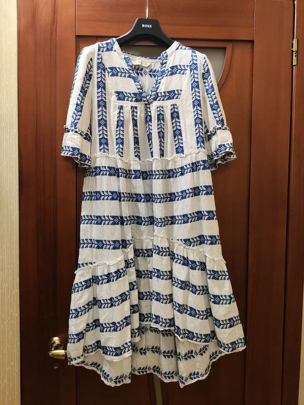 Длина по спинке 104 Длина впереди 87 ПОГ 45 Плечи 38 Рукав 31 100% котон Очень прекрасное, красивое платье!