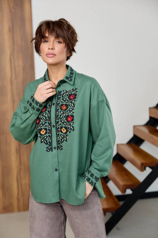Рубашка вышитая женская вышиванка зеленая стильная новинка для женщин вышитая блузка