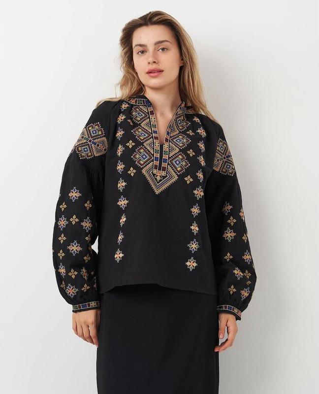Чорна жіноча вишиванка батал великі розміри з довгим рукавом 5618 хл, 2хл, 3хл