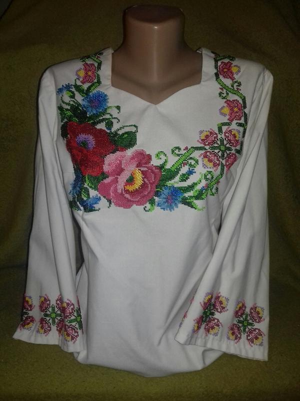 вже пошита вишиванка по заготовці чеським бісером на домотканному полотні... продаю свою вишиванку, вишивала для себе, одіта була 2 рази, продаю бо вишиваю зараз для всіх однакові чоловікові і дитині заміри напишу кому треба, пошита з запасом, тому можете перешити під свій розмір, а загалом то підходить від 44 до 48