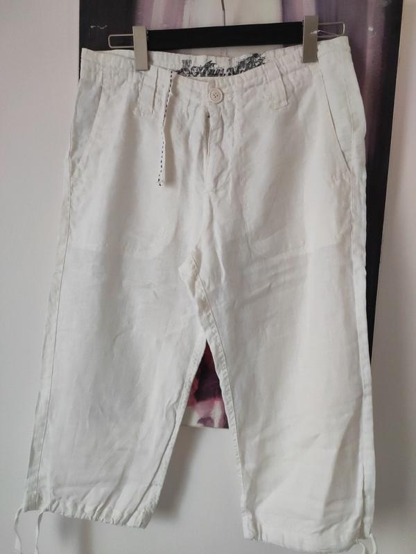 Бриджи хлопок и лен,длина 79, талия44, стягивается, бедра53, посадка высокая